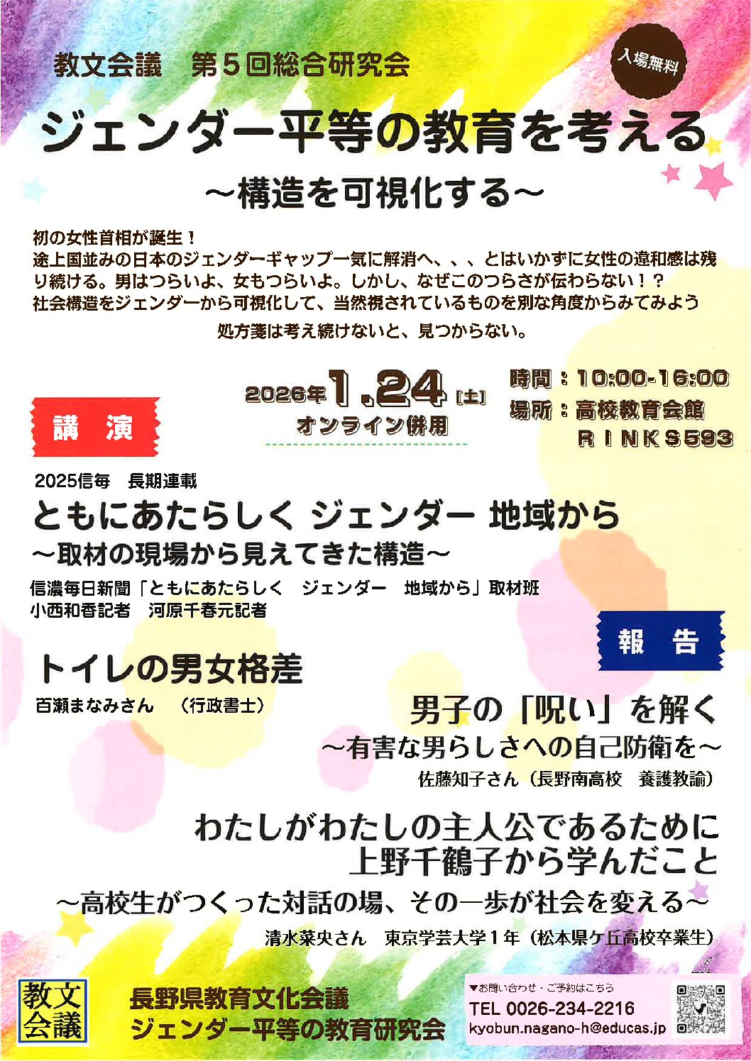 2026/1/24(土) 第5回総研「ジェンダー平等の教育」を考える総合研究会 |